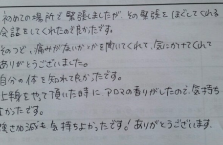 熟練の温かい手技と、あなただけのブレンドアロマは、硬くなった心をじんわりと解きほぐし、